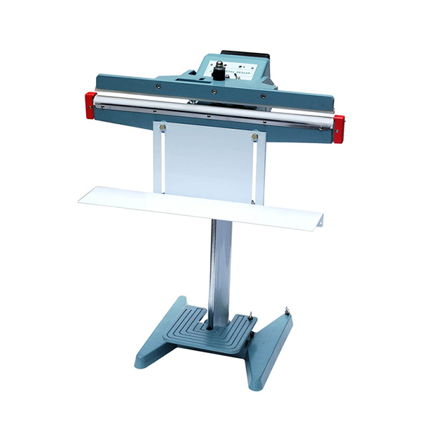 Mesin Penyegel Plastik Pedal Sealer PFSF450-P. Ada dua jenis mesin penyegel dengan menggunakan pedal, yaitu Impulse Sealer ( penyegelan dengan menggunakan plat pemanas yang dilapisi bahan kain atau sejenisnya sehingga plastik yang di segel tidak langsung terkena panas, cocok untuk bahan plastik seperti PVC dan PE) dan Direct Heatsealer ( penyegelan dengan menggunakan plat pemanas langsung, cocok untuk bahan seperti cellophone, aluminium foil, cooper foil,dan polystyrene. Mesin ini juga dilengkapi dengan sistem elektronik pengatur suhu untuk penyegelan.